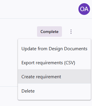 If you want to create a custom requirement, you can do that as well. Press the three dots (ellipsis) next to Complete, and from there you can create a new requirement.