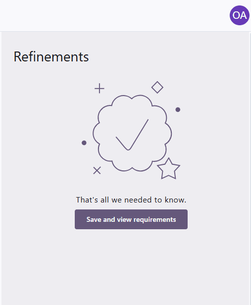 When you have finished answering the refinement questions, you will see a screen that says "That's all we needed to know." Press Save and view requirements to continue.