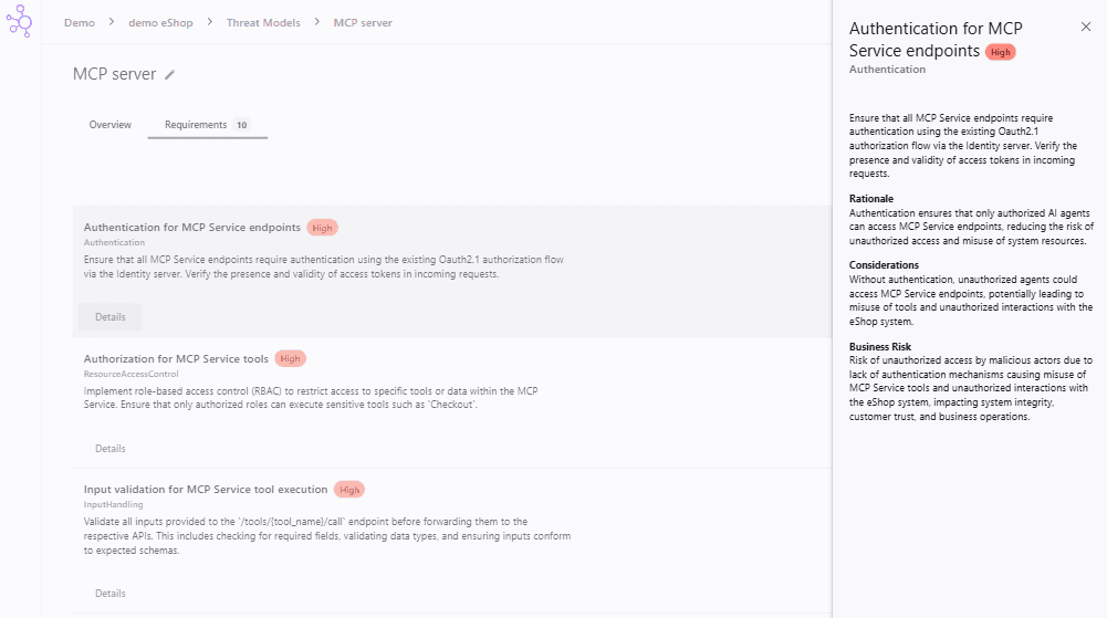 For every requirement, you can press Details to see why the requirement was added and what business risk it addresses.