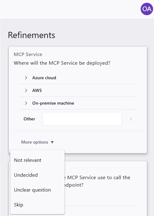 Refinements can be either single-choice or multiple-choice. If you are not satisfied with the pre-filled answers, you can always select Other and provide a free-text response.